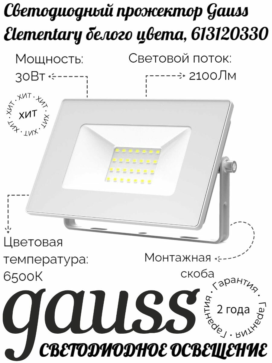 Прожектор уличный Gauss Elementary светодиодный 30Втбелый 613120330