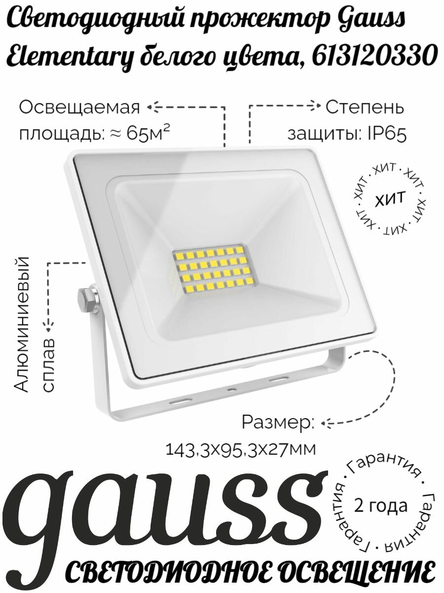 Прожектор Gauss Elementary 30W 2700lm 6500K 200-240V IP65 белый LED 1/10 SQ613120330