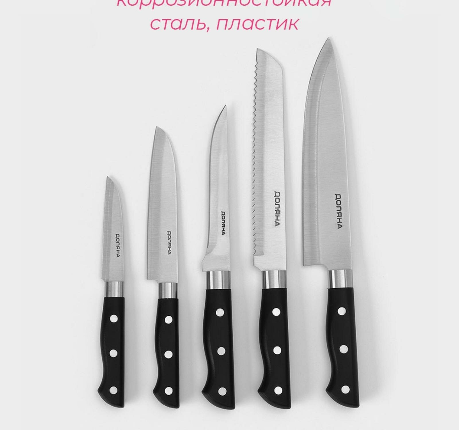 Набор кухонных ножей "Кронос" 7 предметов на подставке Доляна 7422031 . интересное: