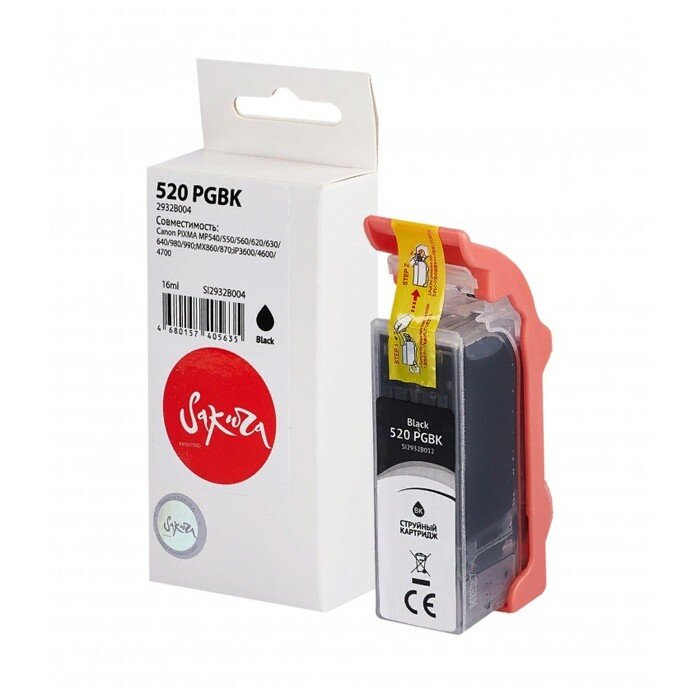 Картридж 2932B004 (520 PG Black) для Canon, струйный, черный, 16 мл., 340 страниц, Sakura