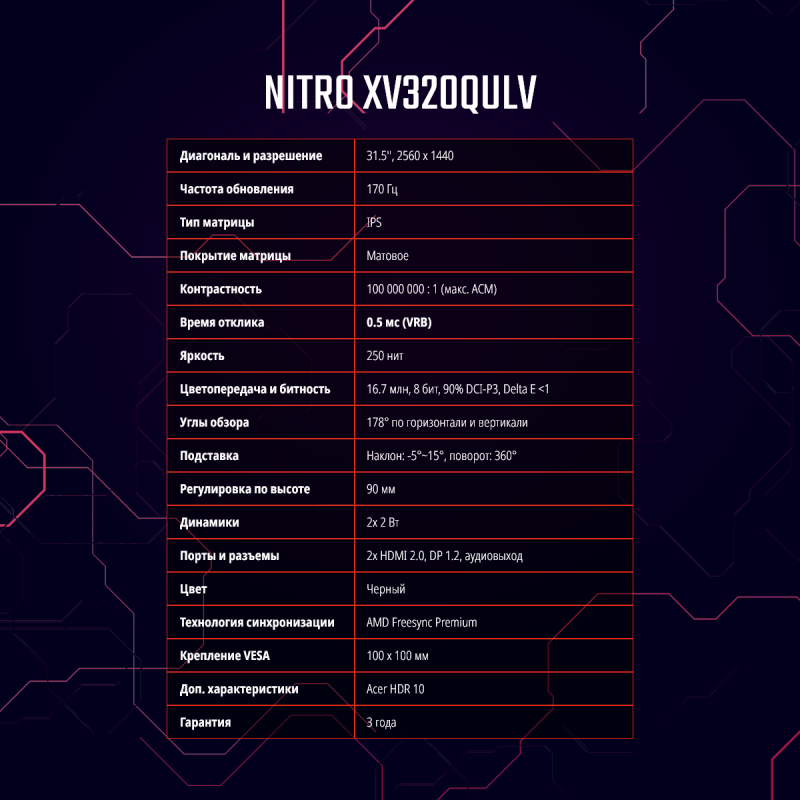 Монитор 32" Acer Nitro XV320QULVbmiiphx UM.JX0EE.V01