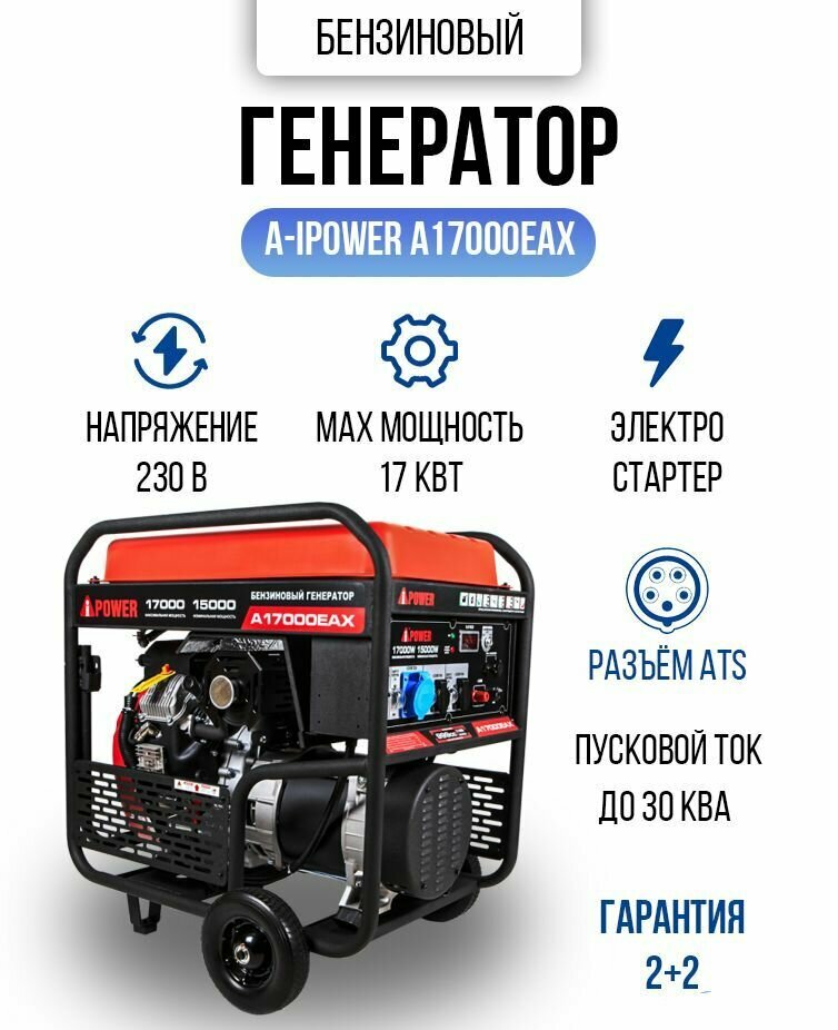 Бензиновый генератор A-iPower A17000EAX с электростартером, (17 кВт, 230В) Пусковая мощность 30кВа