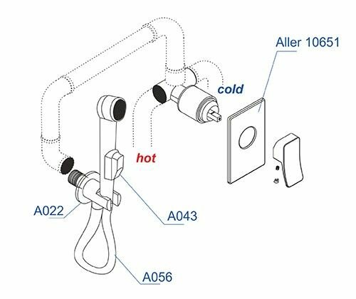 | Комплектация | Смеситель для душа Aller 10651. Подключение шланга A022. Шланг для душа 1000 мм А056. Гигиеническая лейка с фиксатором A043. |