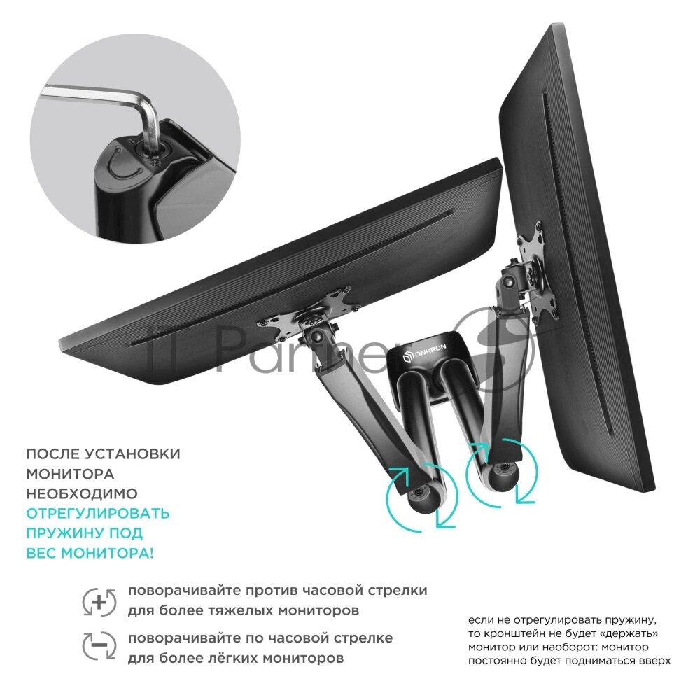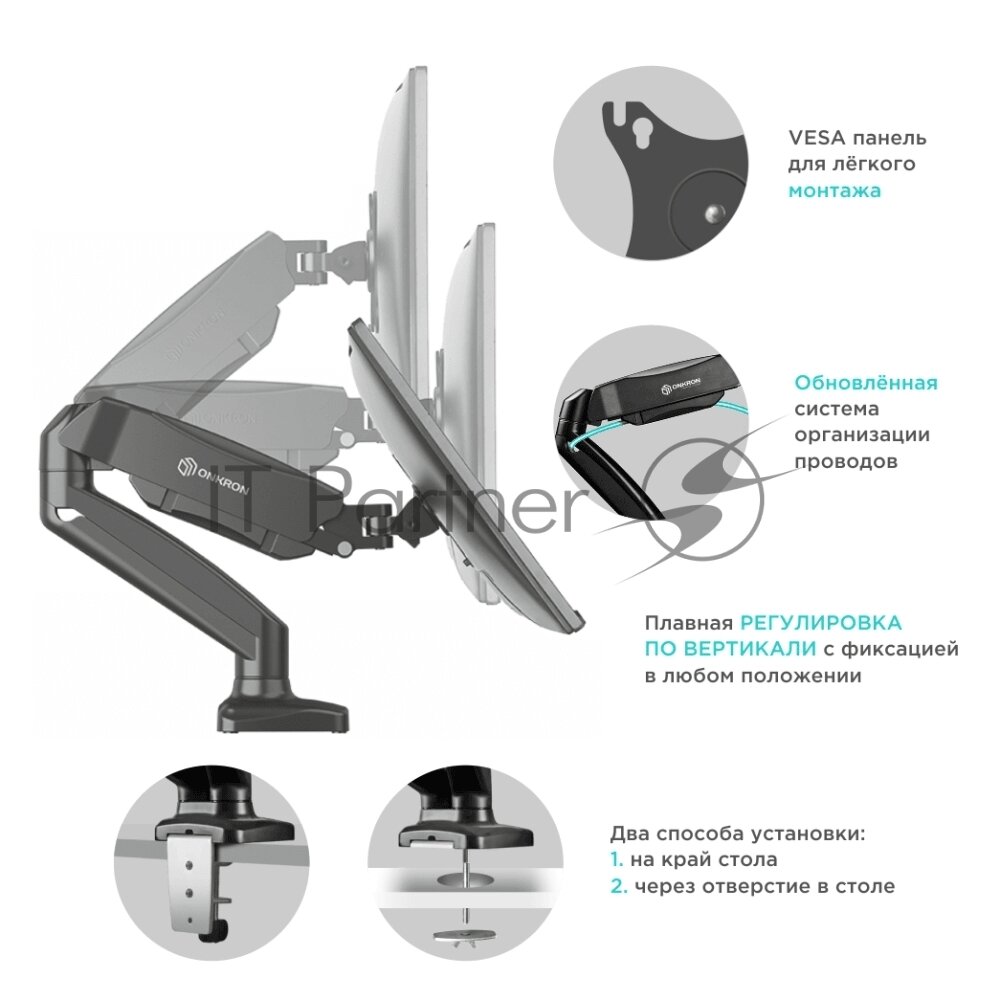 Кронштейн Onkron G160, TV 13-32, для 2-ух мон, газлифт, настольный, чер