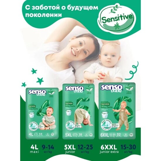 SENSO/сенсо Baby Трусики - подгузники SENSITIVE 6XXL junior extra (15-30кг) 32шт