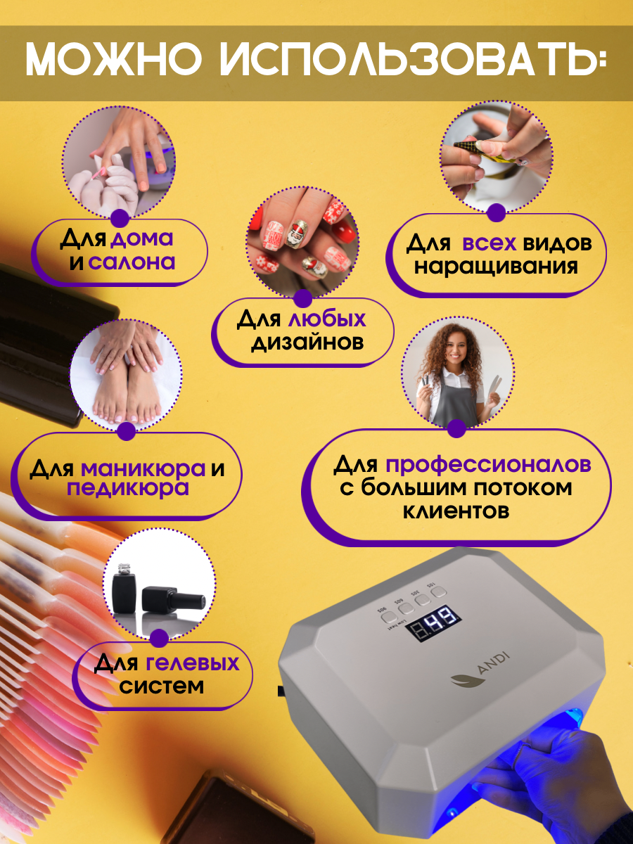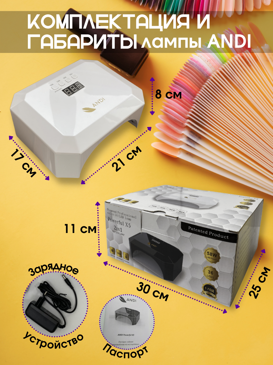 ANDI Лампа маникюрная для сушки ногтей Powerful X5 58W с дисплеем и таймером, Белая интересное:
