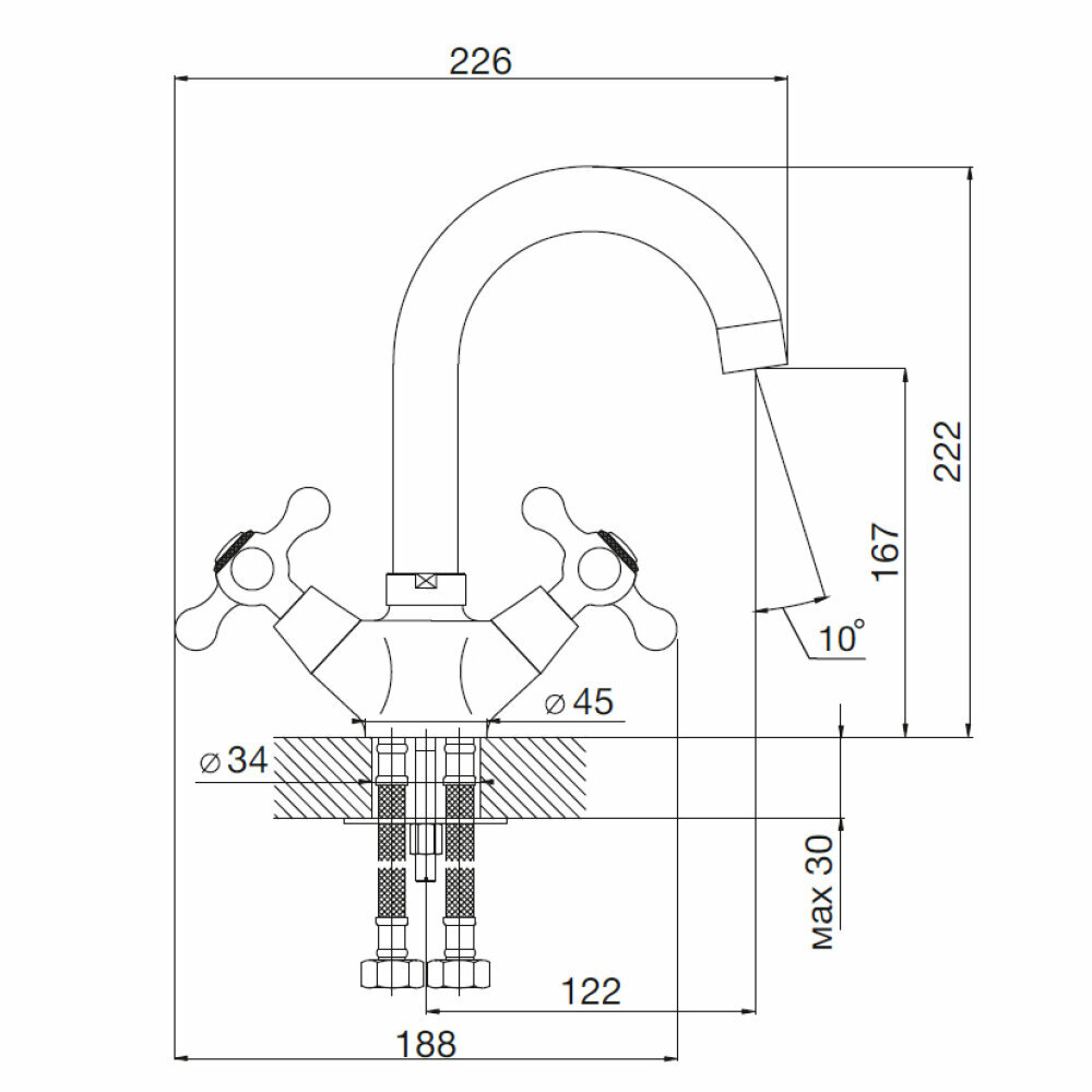 | Комплектация | смеситель для раковины -1шт; Гибкая подводка -2шт; Мотажны йнабор |
