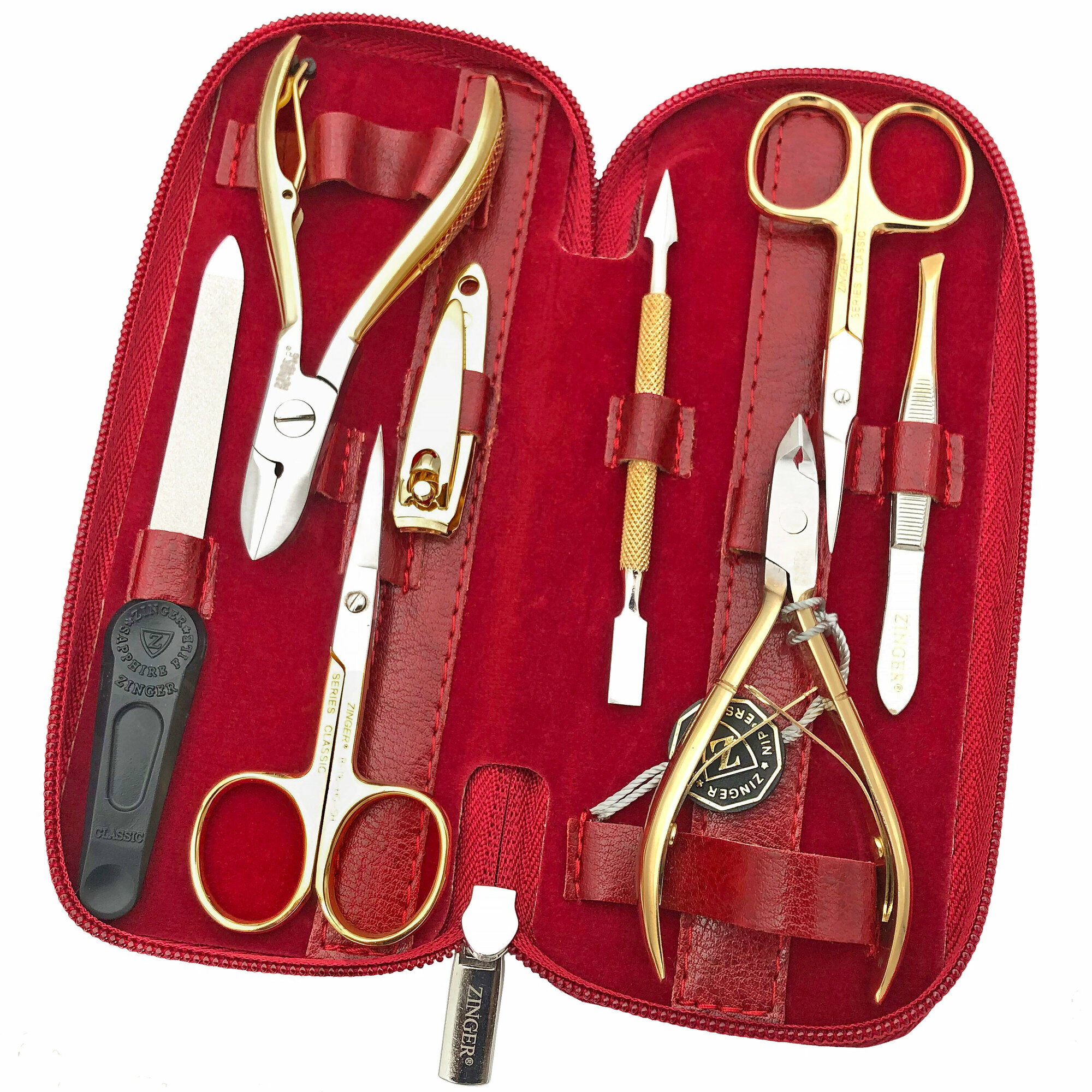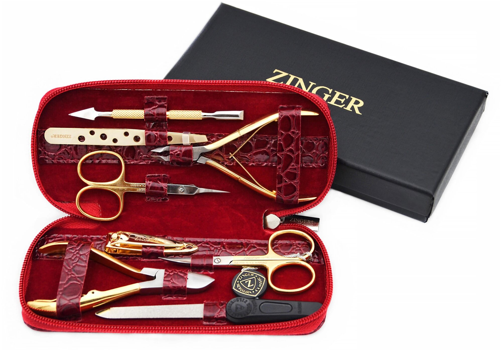 Маникюрный набор Zinger 7106 G, позолоченный/бордовый, 8 предметов