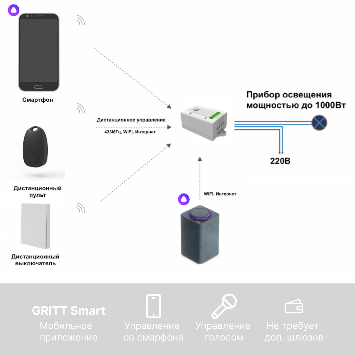 СохранитьУмный беспроводной выключатель GRITT Evolution 1кл. белый комплект: 1 выкл. IP67, 1 реле 1000Вт 433 + WiFi с управлением со смартфона, EV221110WWF интересное: