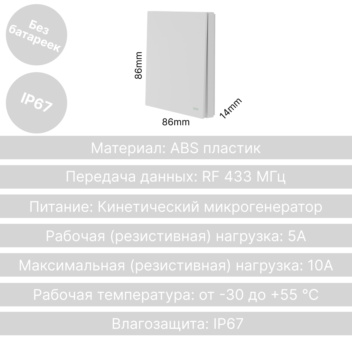 Умный беспроводной выключатель GRITT Evolution 2кл. белый комплект: 1 выкл. IP67, 2 реле 1000Вт 433 + WiFi с управлением со смартфона, EV221220WWF