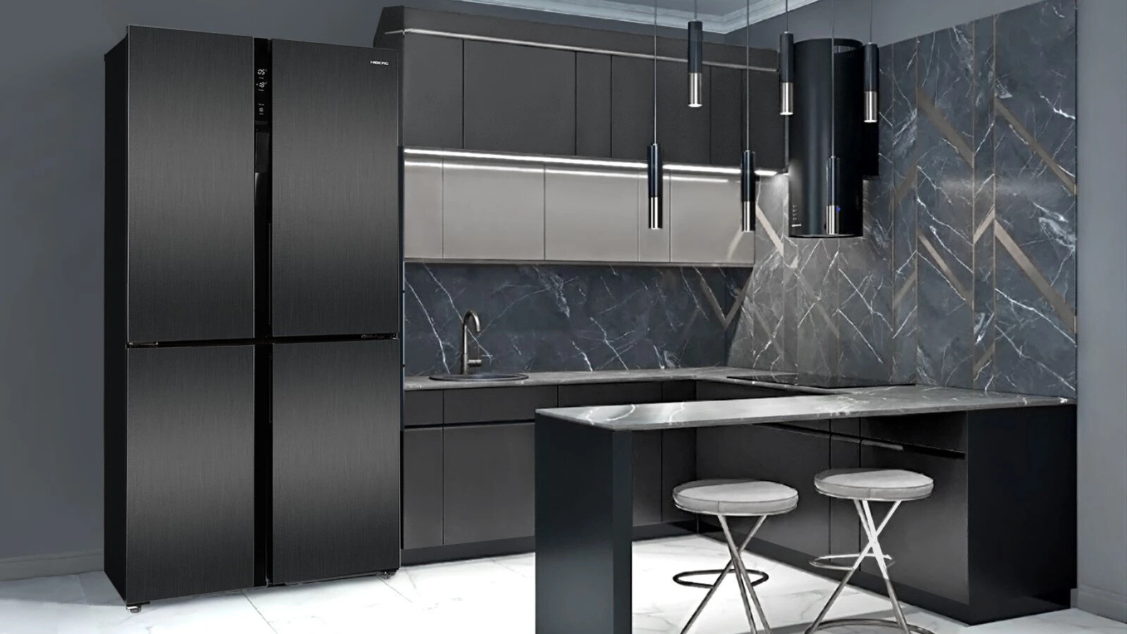 Холодильник HIBERG RFQ-500DX NFXd inverter отдельностоящий, 4 двери, 545 л, темная нержавеющая сталь