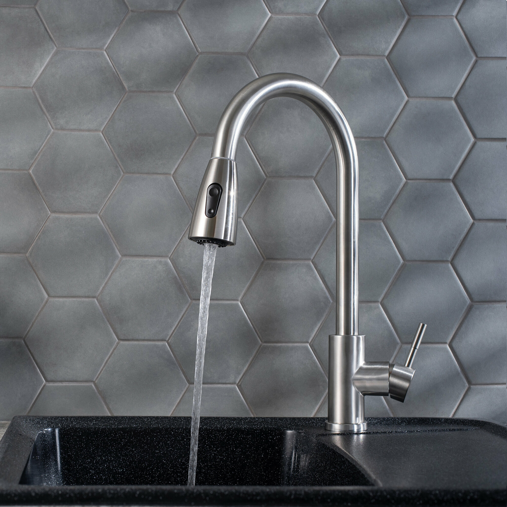 Смеситель для кухни, РМС SUS124-017F-2, выдвижной излив, нержавеющая сталь, режим душ
