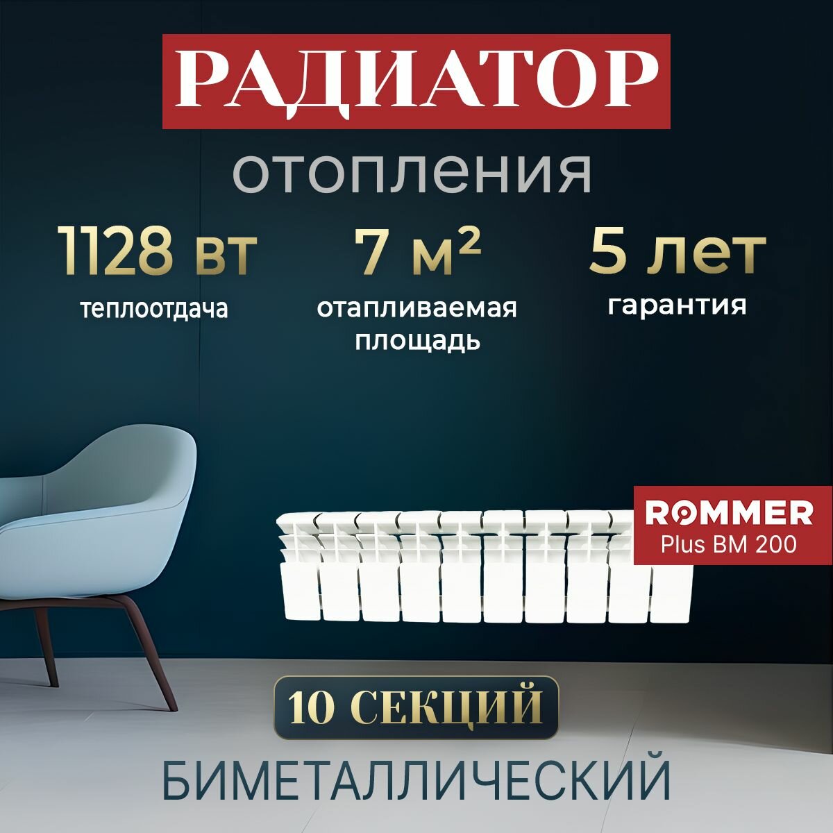 Радиатор Rommer Plus BM 200 10 секций, биметаллический