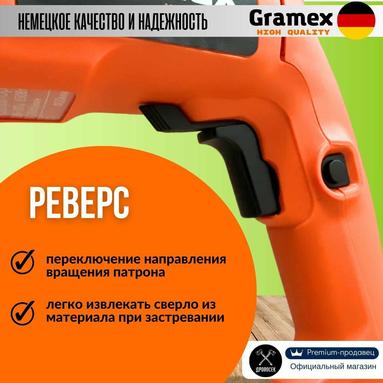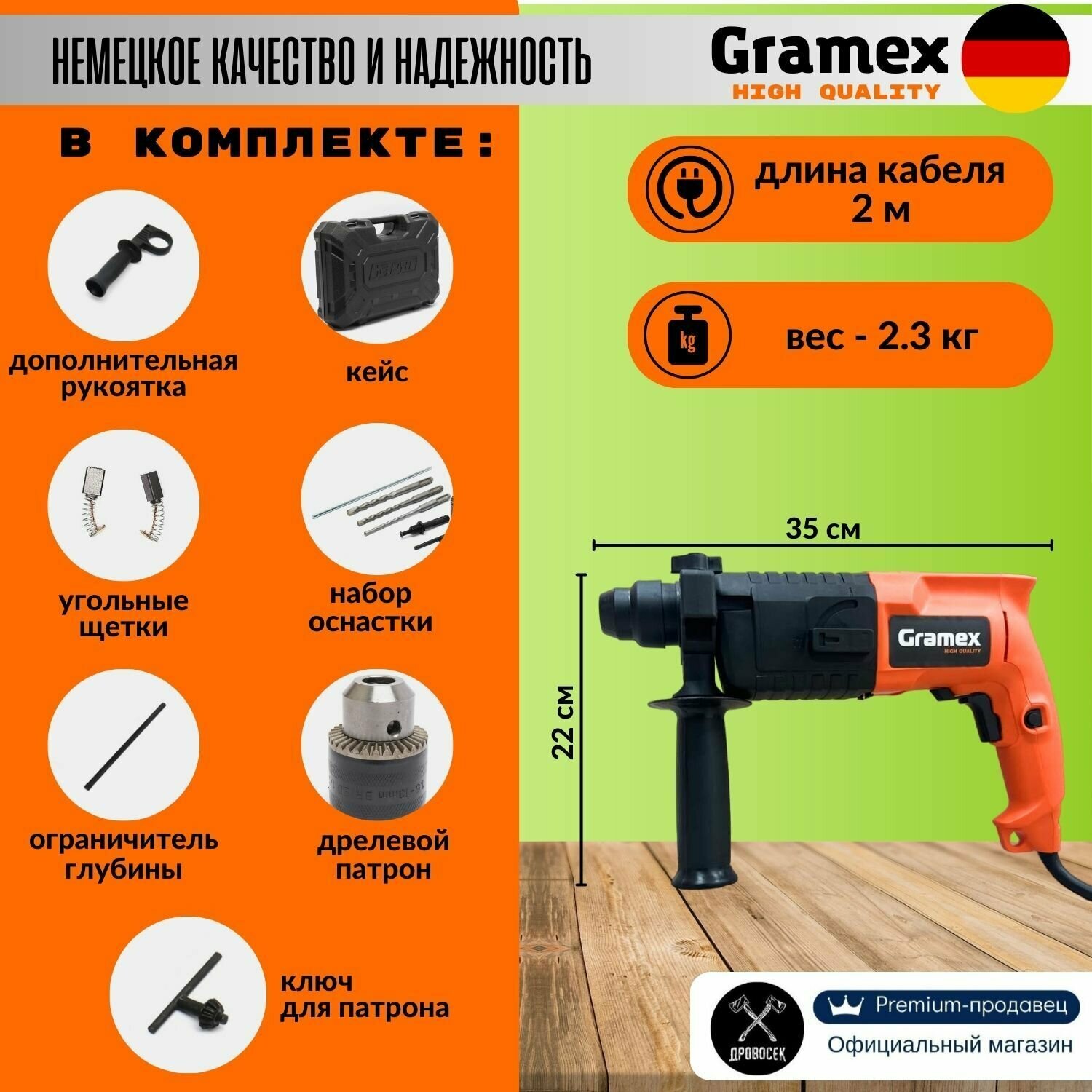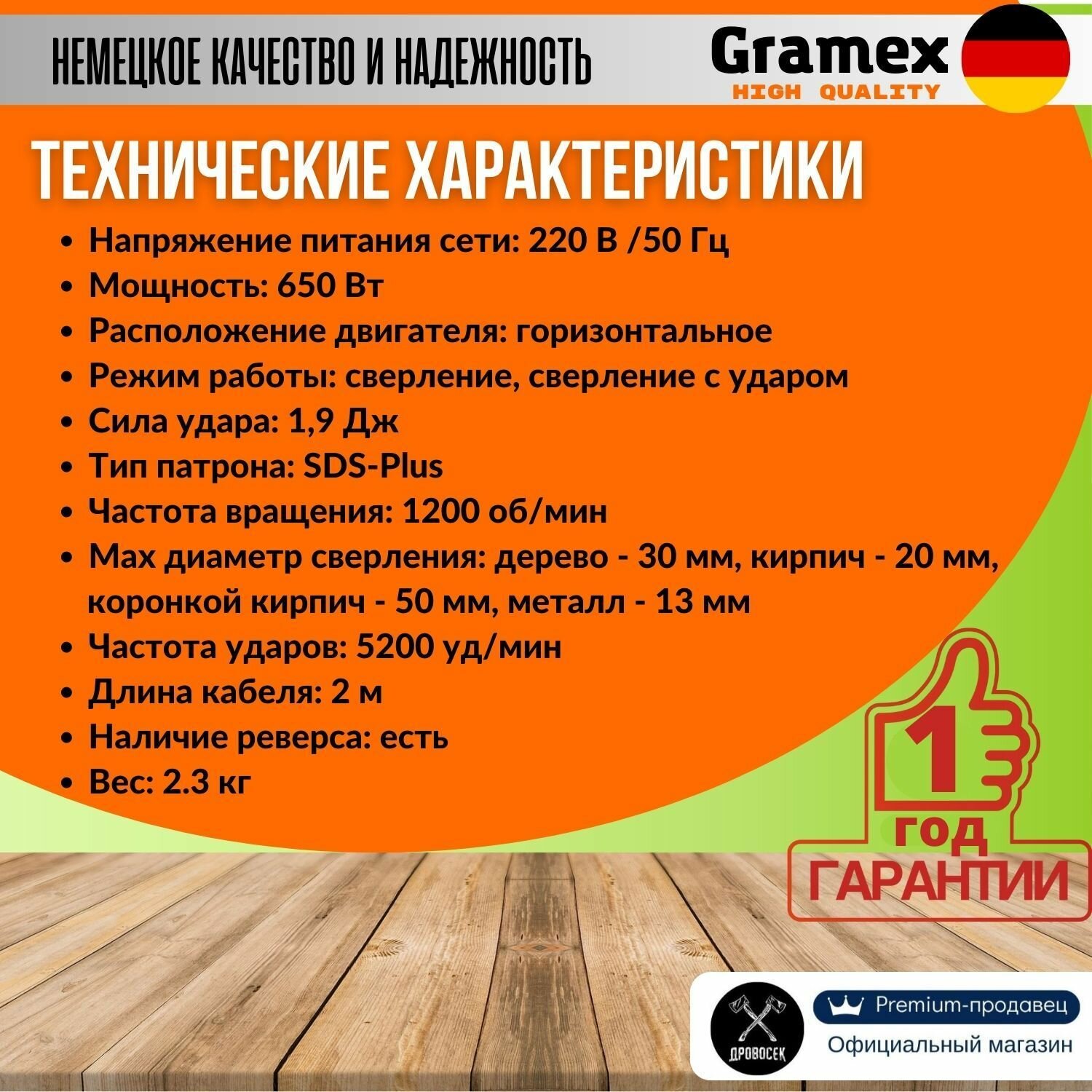 Перфоратор GRAMEX HRH-650 электрический (2 режима, 650Вт, 1,9 Дж, набор буров) в кейсе, от сети интересное:
