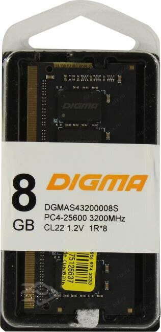 Купить Digma DDR4 SO-DIMM 3200Mhz PC4-25600 CL22 - 8Gb DGMAS43200008S