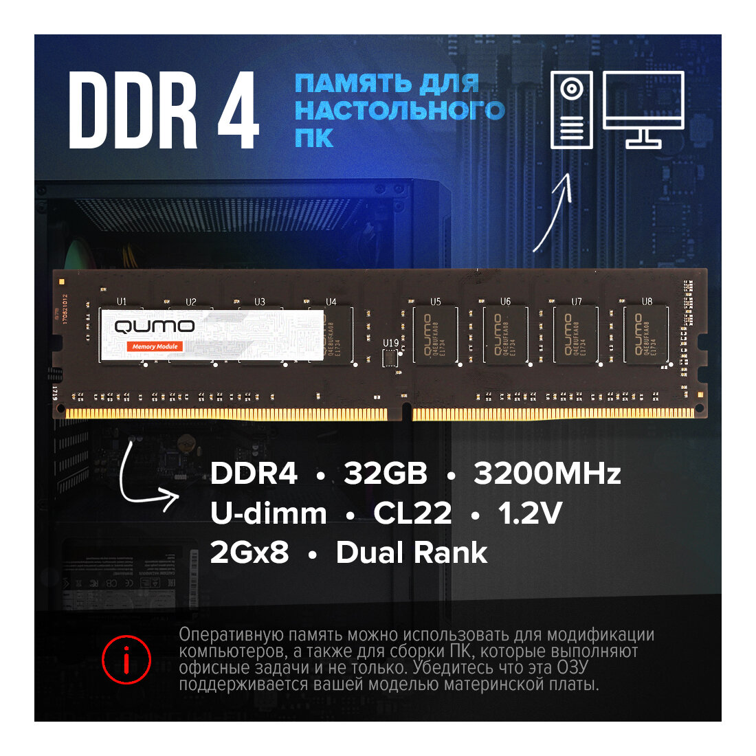 Оперативная память QUMO 32Gb DDR4 3200MHz (QUM4U-32G3200N22) интересное: