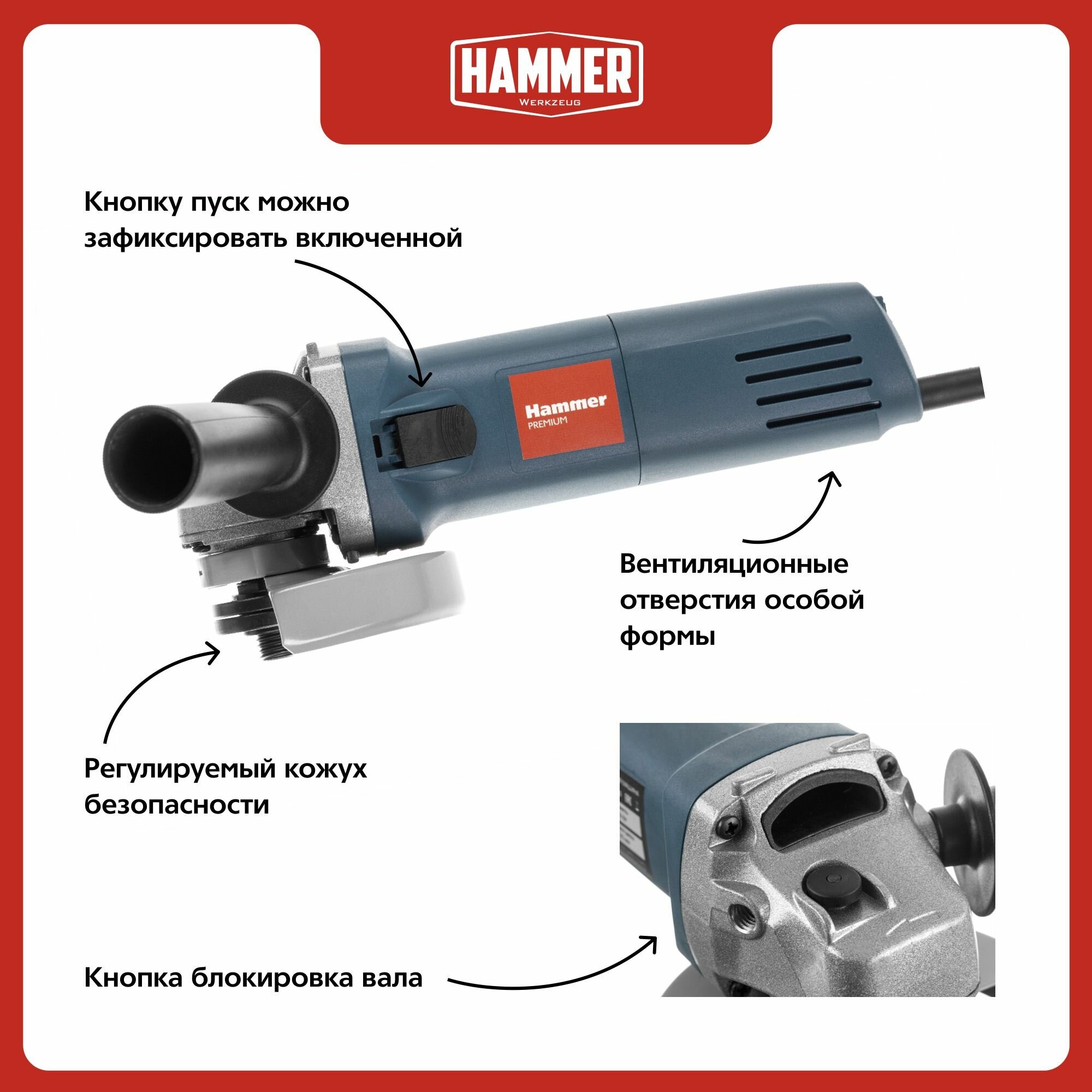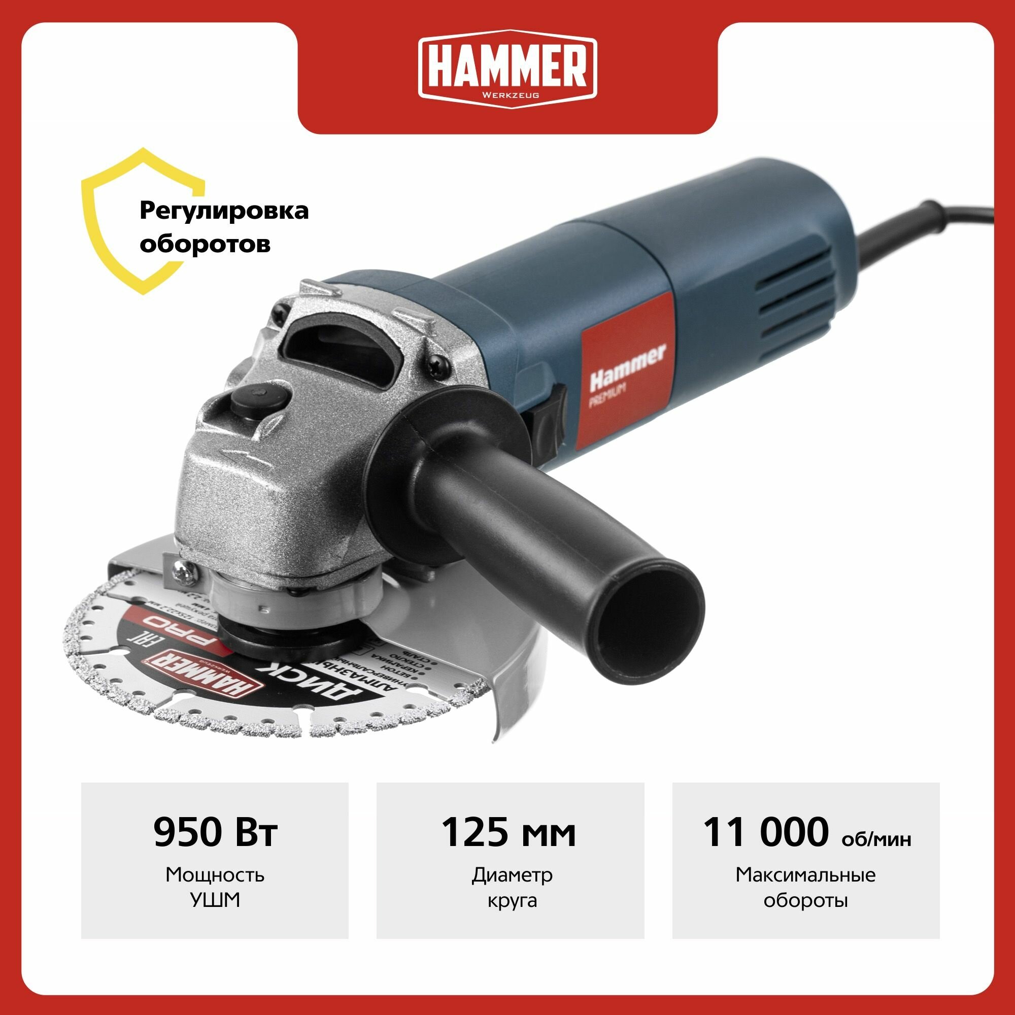 УШМ Hammer USM950B PREMIUM, 950 Вт, 125 мм