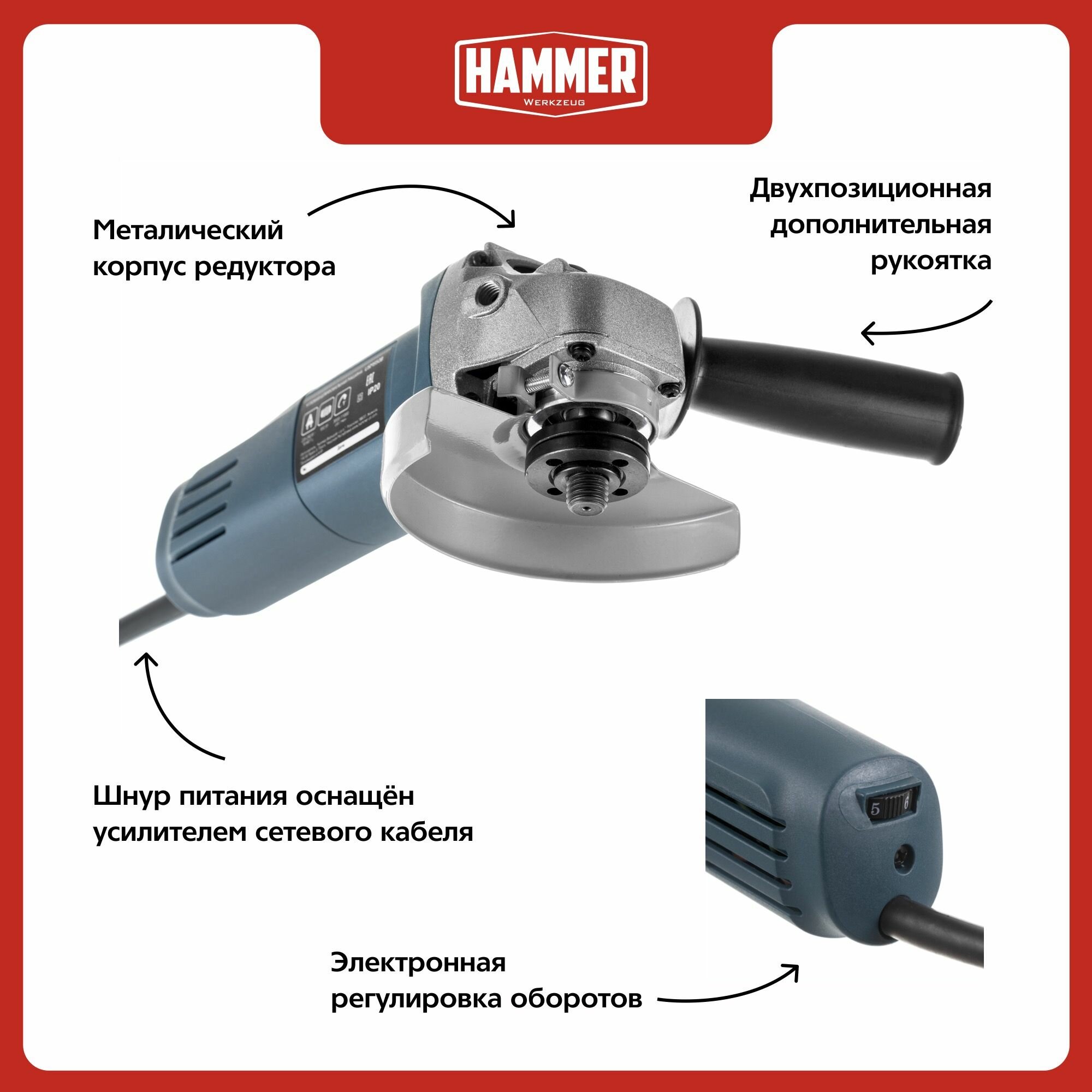 Шлифмашина угловая 125 (болгарка) HAMMER PREMIUM USM950B, 950Вт, с регулировкой скорости, От сети интересное:
