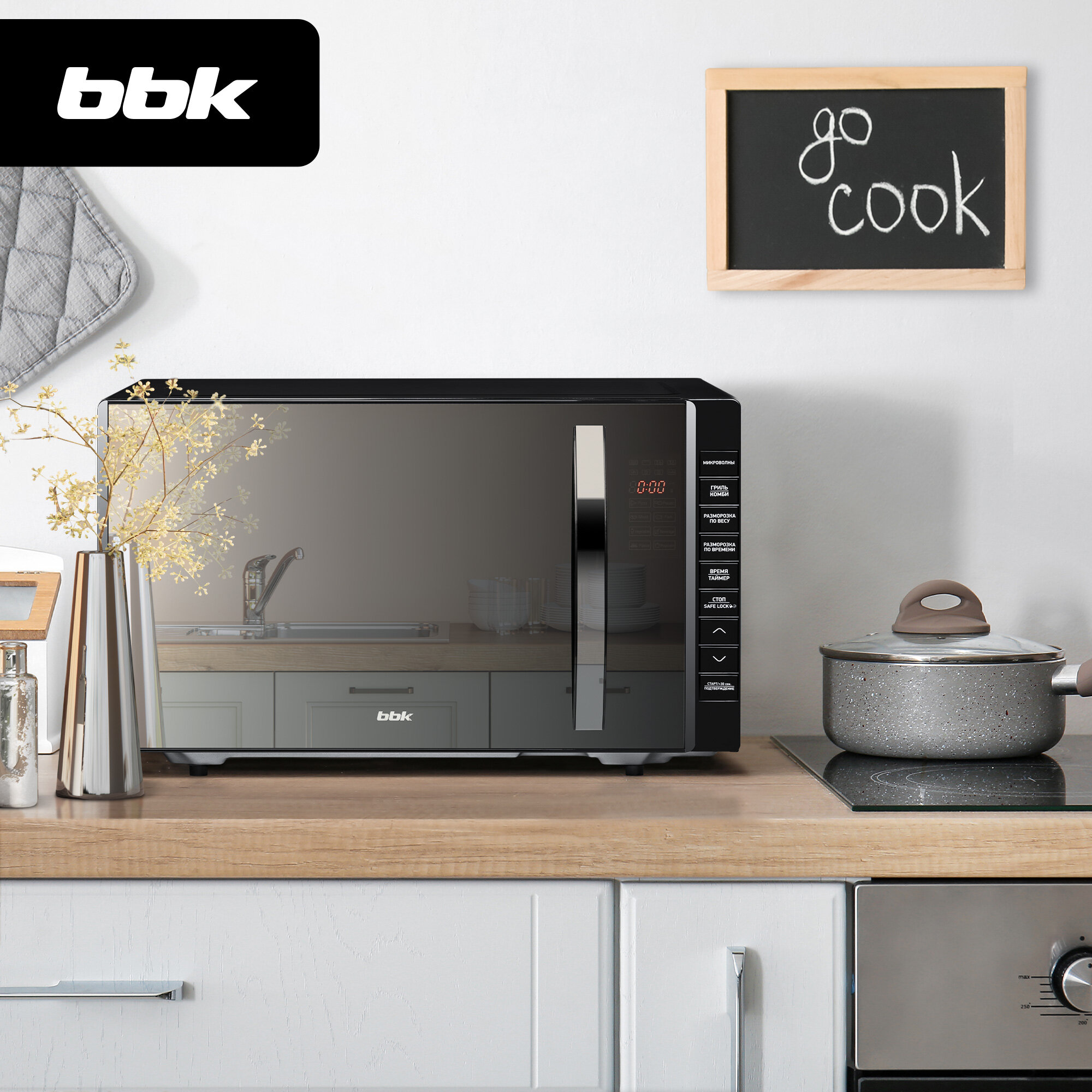 Микроволновая печь с грилем BBK 23MWG-850T/B-M черный, объем 23 л, мощность 800 Вт, автоменю, функция SAFE LOCK интересное: