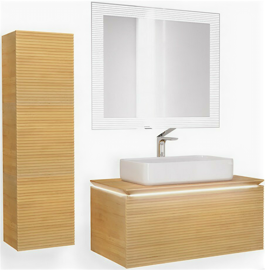 Тумба для комплекта Jorno Karat 100, с подсветкой, светлый бук