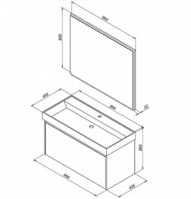 Тумба под раковину AQUANET Nova Lite 100 (1 ящик) Белый Размеры: Высота 488мм Глубина 435мм Ширина 966мм