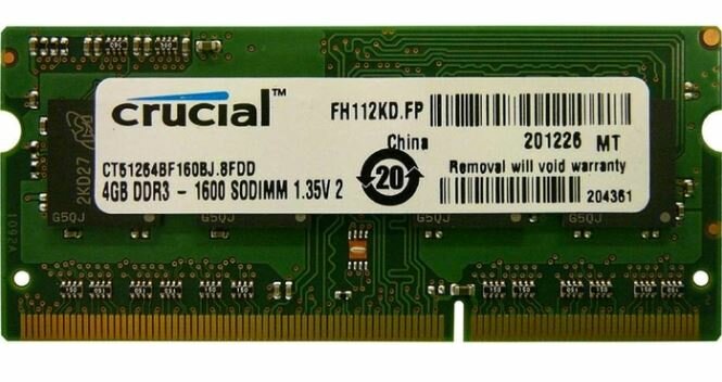 Купить Оперативная память Crucial 4 ГБ DDR3L 1600 МГц SODIMM CL11 (CT51264BF160BJ)