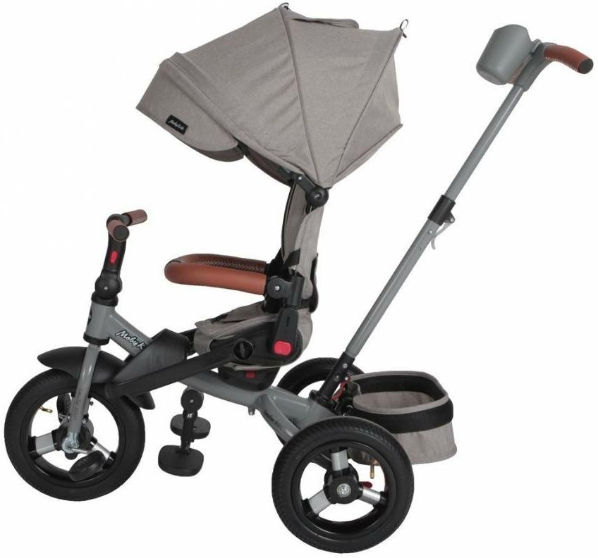 Велосипед трехколесный Moby Kids Leader 360, колеса 12 и 10 дюймов, AIR, серый, экокожа (641487)