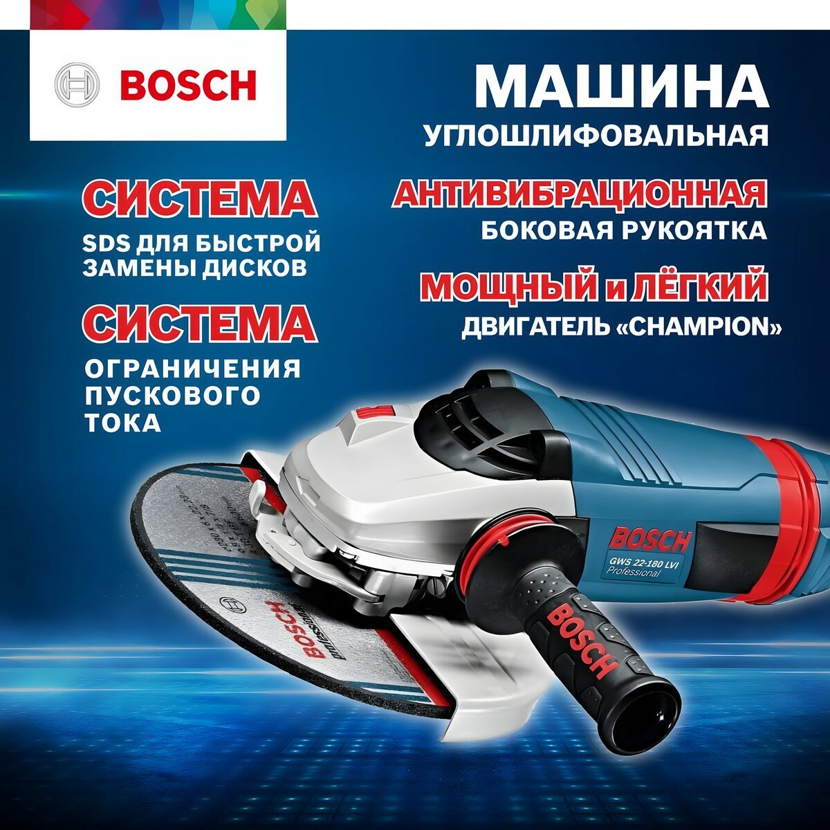 Шлифмашина угловая BOSCH GWS 22-180 LVI 0601890D00 (180 мм, 2200 Вт, 8500 об/мин) интересное:
