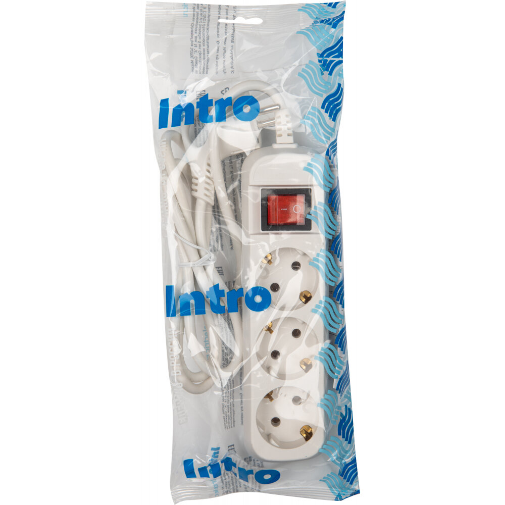 Удлинитель Intro 3 розетки с заземлением и выключателем, 1,5 метра, ПВС, 3x0,75 мм²