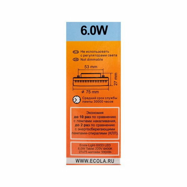 Ниже Вы можете прочитать отзывы на Лампа светодиодная Ecola Light, GX53, 6 Вт, 6400 K, 27x75 мм, матовое стекло 2908618, ознакомится с подробными характеристиками, посмотреть интересные обзоры и фотографии на Лампа светодиодная Ecola Light, GX53, 6 Вт, 6400 K, 27x75 мм, матовое стекло 2908618.