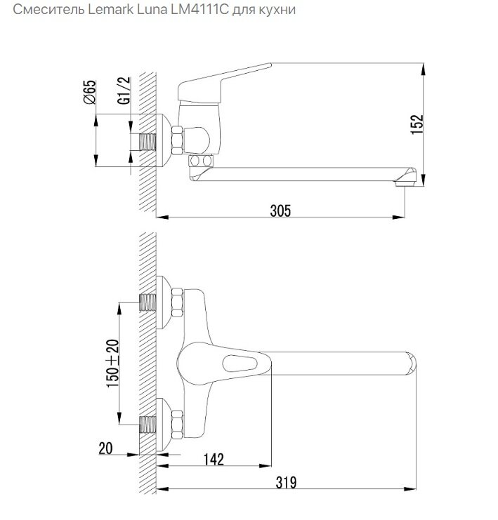 Смеситель д/умывальника LEMARK Luna,настенный плоский излив 250мм LM4111C интересное: