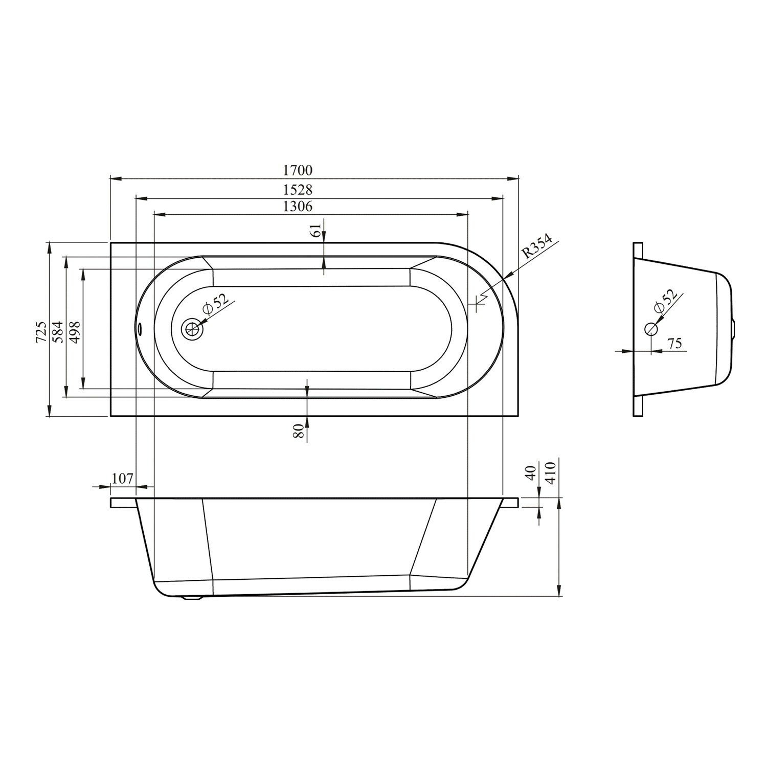 Угловая ванна акриловая 170x72 Lavinia Boho Art II S2-371317PR в наборе 4 в 1: пристенная ванна 170 x 72 см (правый разворот), ножки, экран, подголовник