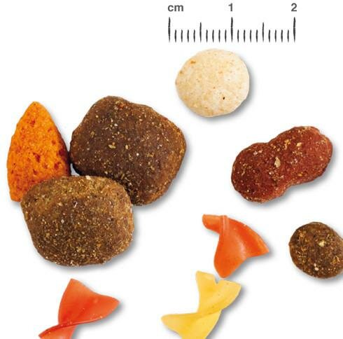 | Состав | рис, кукуруза, пшеница, сухое мясо птицы, низкой зольности, отруби, лапша (7%), шкварки, сушеные, мясокостная мука, растительные масла, овощи, экструдированные (4%, на морковь, сушат 0,10% , горох, сушат 1,35%), птичий жир, пивные дрожжи, сушеные, сушеная мякоть свеклы, сахара удаляются, сельди, фосфат кальция, куриная печень, гидролизованный, яйца, сушеные, стручки рожкового дерева, сушеные, хлорид натрия, карбонат кальция |