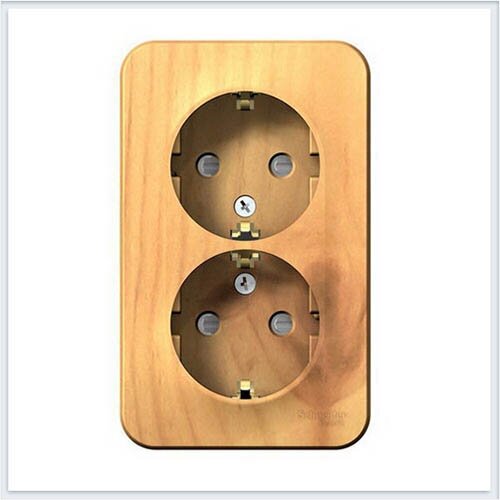 Купить SE Blanca наруж Ясень Розетка 2-ая с/з со шторками 16А, 250В, изолир. пластина