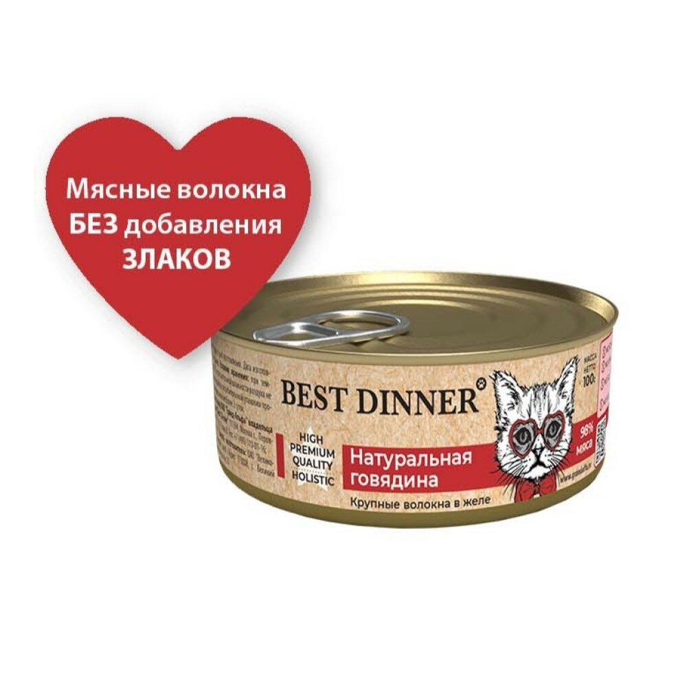 Влажный консервированный корм Best Dinner Бест Диннер для кошек High Premium, натуральная говядина в желе, 100 гр. по 12 шт.