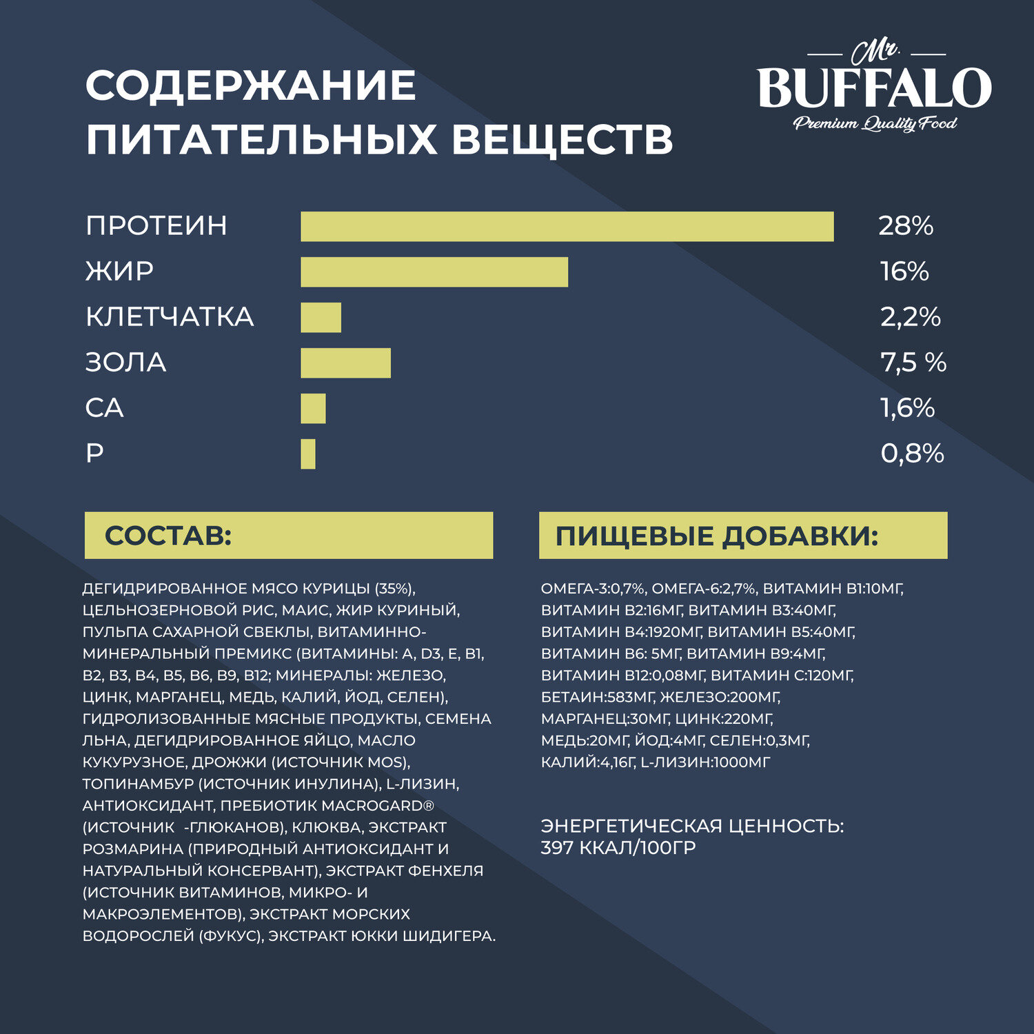 СохранитьMr.Buffalo Adult mini сухой корм для собак мелких пород с курицей 800гр интересное:
