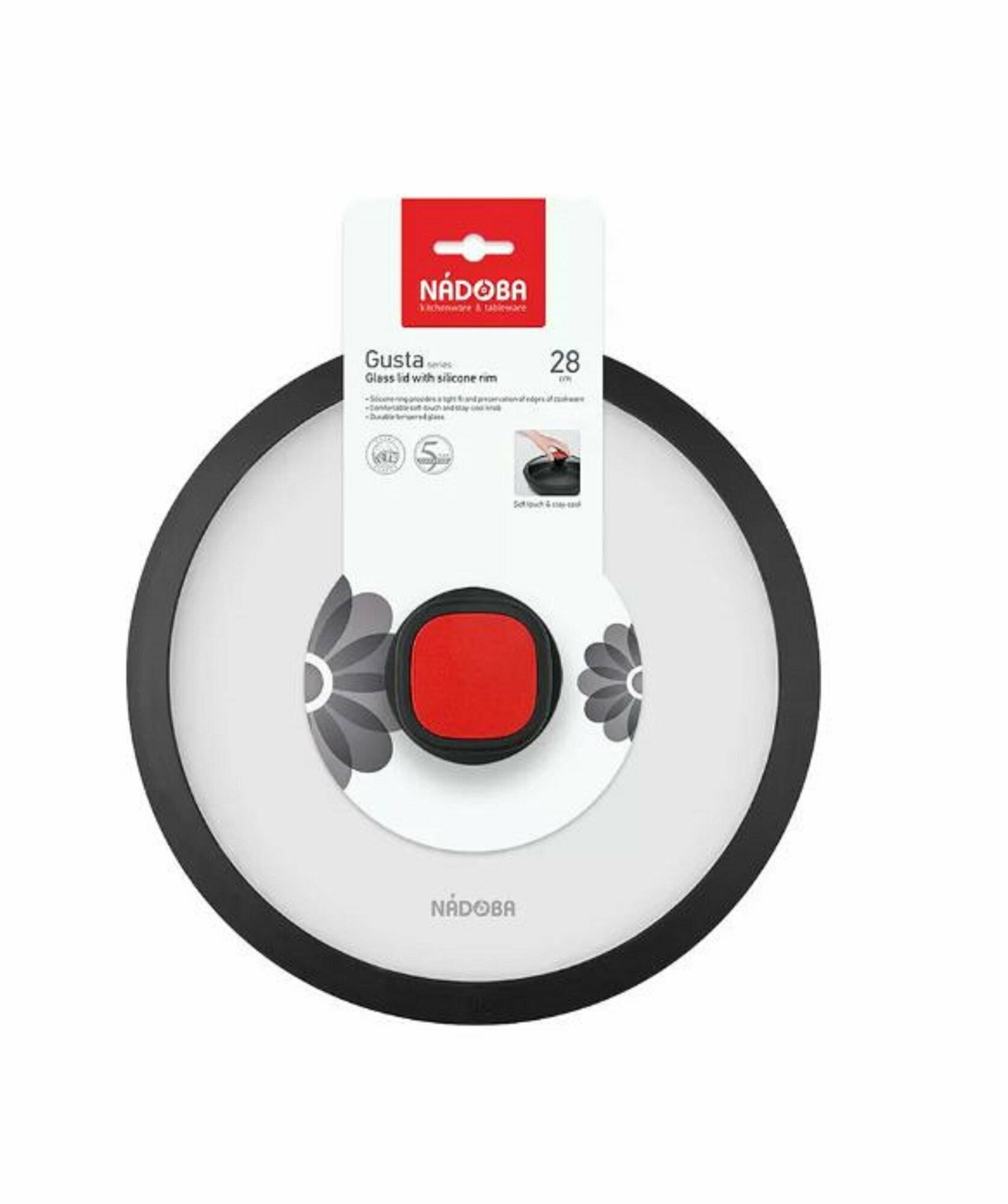 Стеклянная крышка Nadoba с силиконовым ободом, 28 см, серия GUSTA