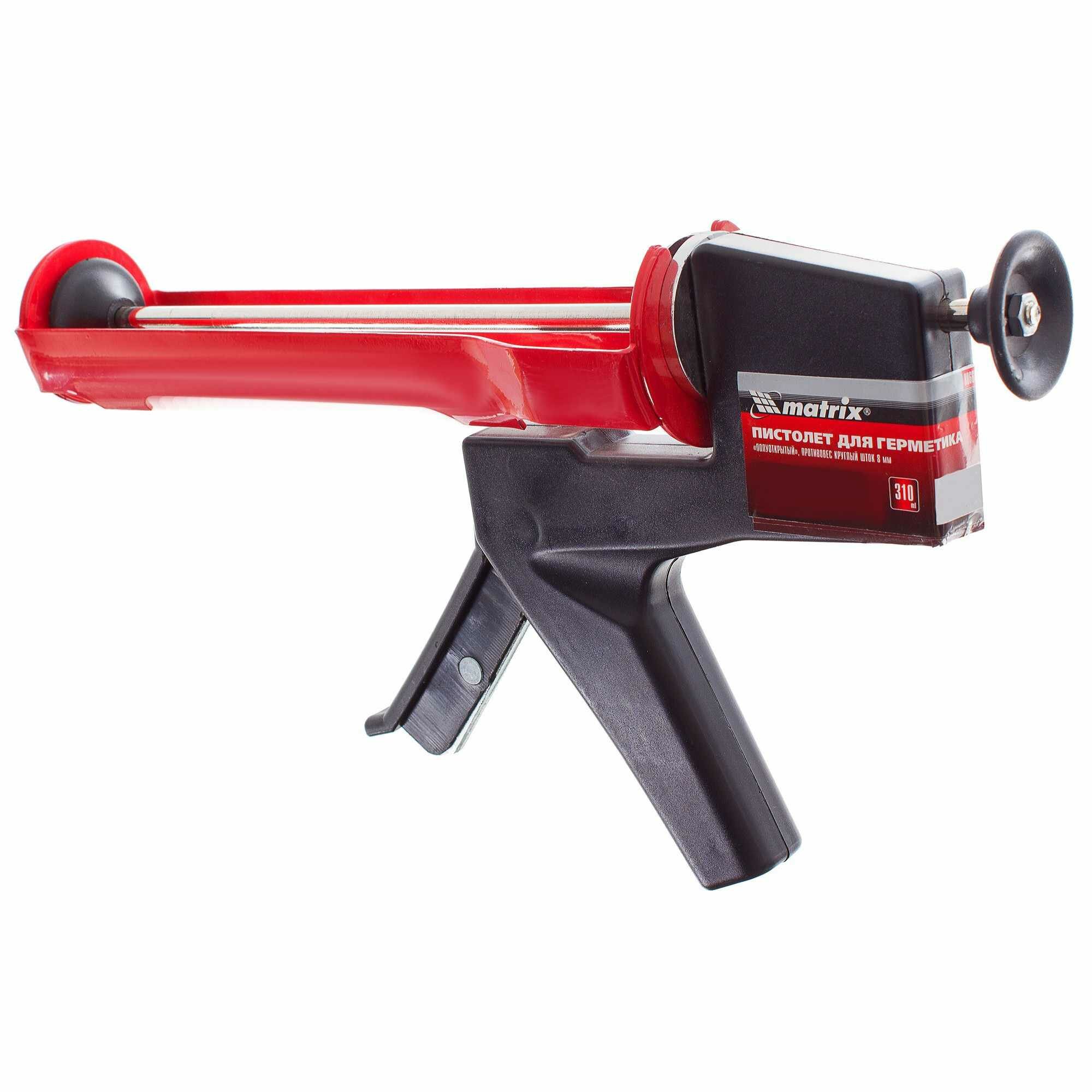 Пистолет для герметика, 310 мл, "полуоткрытый", противовес, круглый шток 8 мм Matrix, 88666