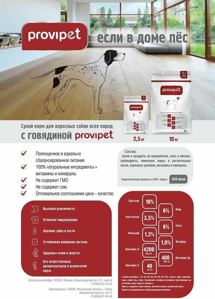 Сухой корм для собак всех пород с говядиной ProviPet 10кг. интересное: