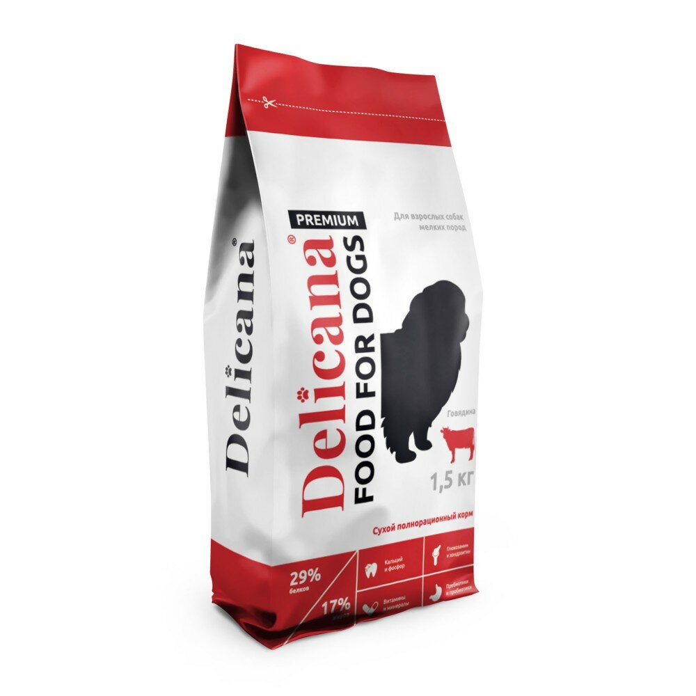 Купить DELICANA Корм сухой для собак мелких пород Говядина 1,5 кг