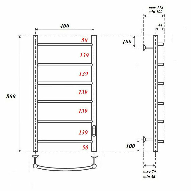 Полотенцесушитель электрический 800x532 диммер справа Point Виктория П6 PN06858