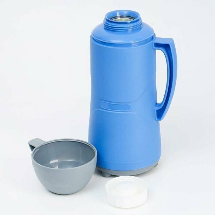 Термос 1 л, со стеклянной колбой, сохраняет тепло 8 ч, 30 х 16 см, синий интересное: