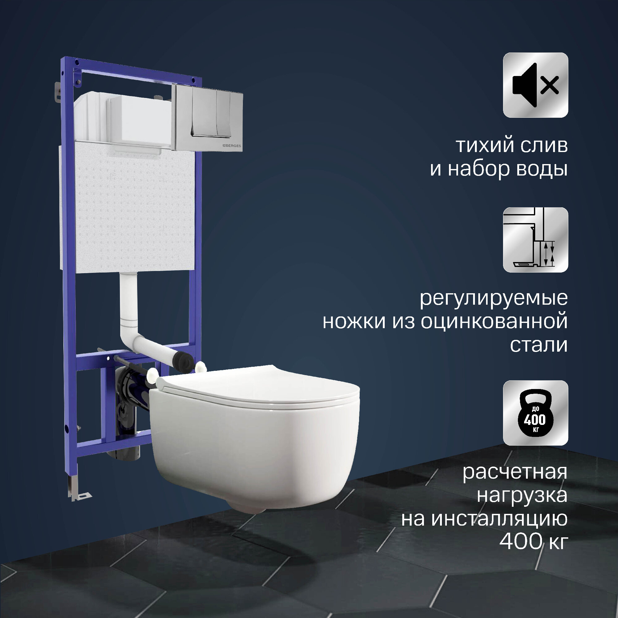 Инсталляция BERGES для скрытого монтажа унитаза NOVUM кнопка S3 хром глянец