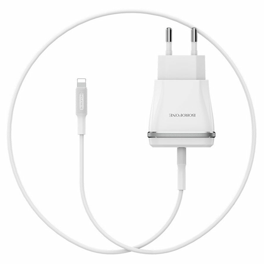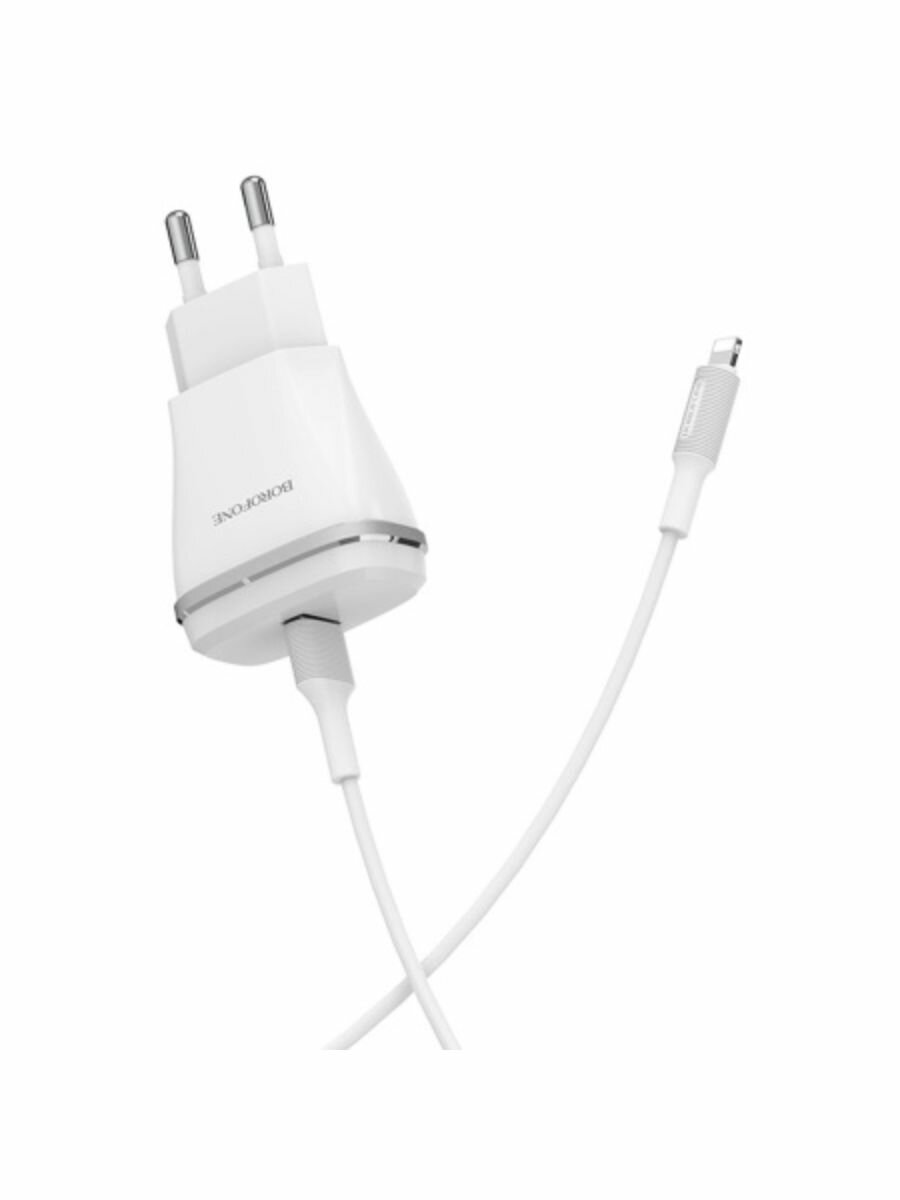 Купить Сетевое зарядное устройство BOROFONE BA1A Joyplug 1xUSB с Кабелем USB - Lightning, 1A, белый