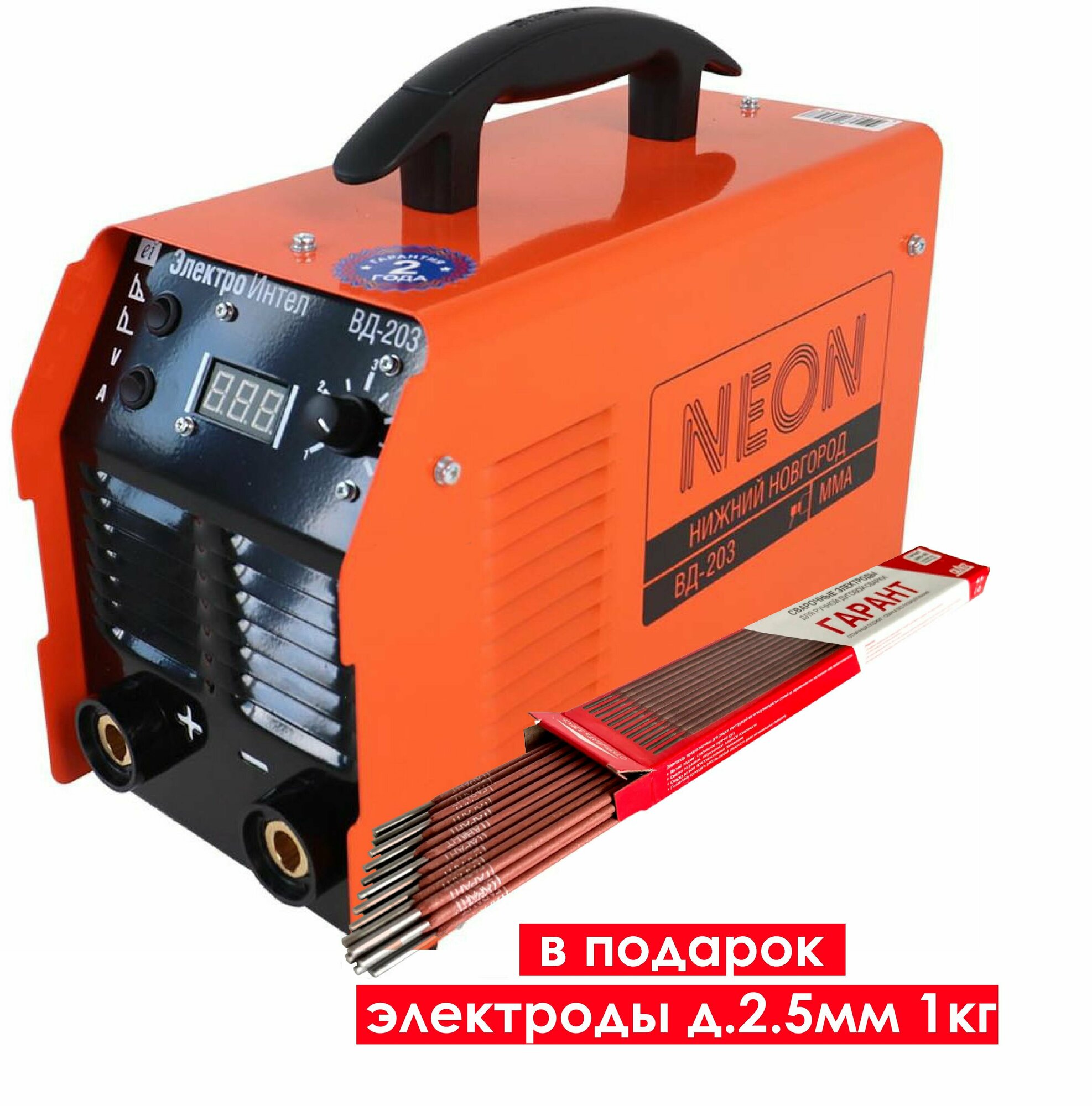 Инверторный сварочный аппарат NEON ВД-203 + электроды д. 2.5мм 1кг