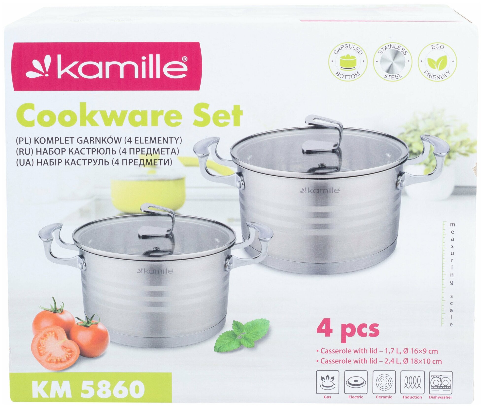 Набор кастрюль 4 предмета из нержавеющей стали Kamille KM-5860 (1,7 л; 2,4 л)