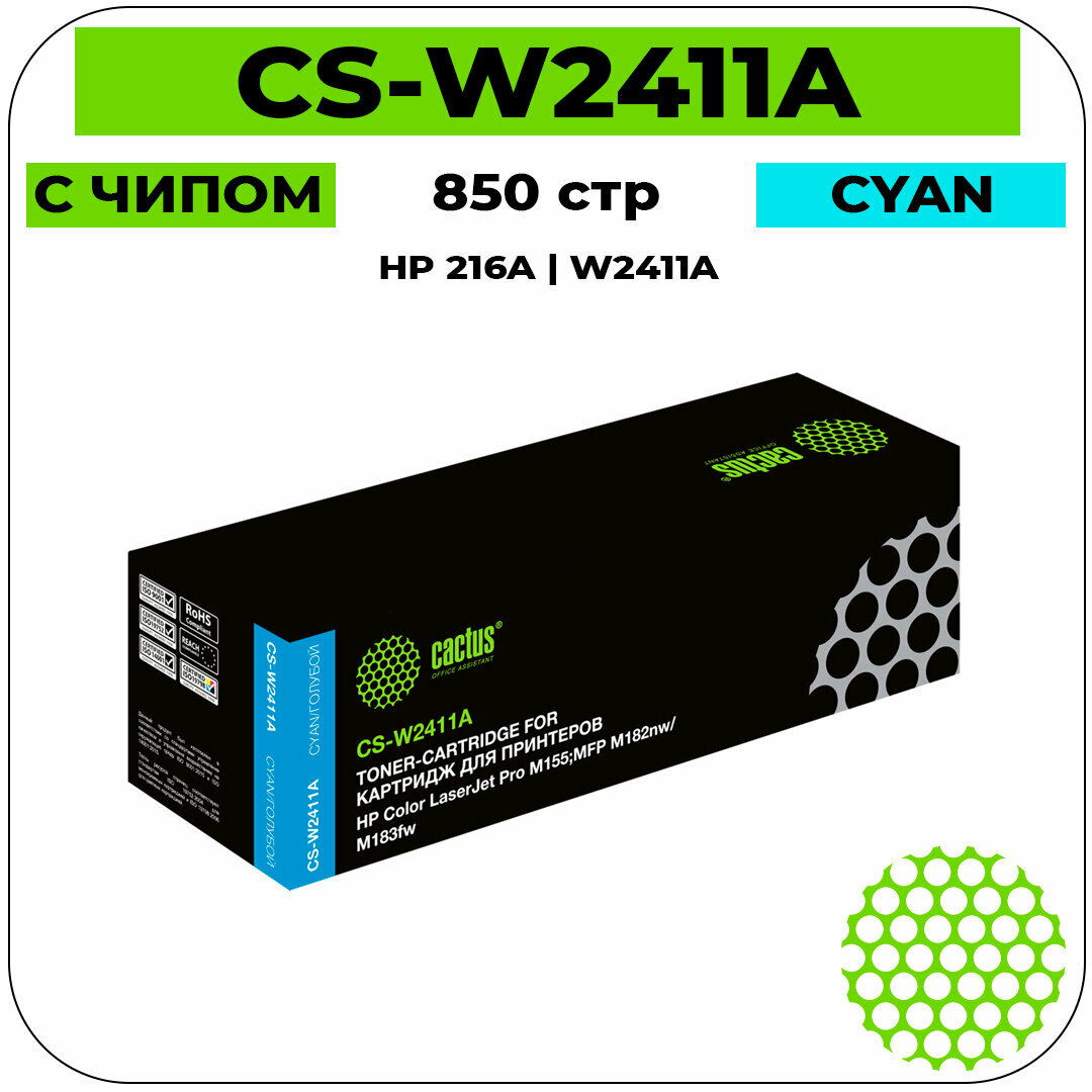 Картридж лазерный CACTUS (CSP-W2411A) для HP Color LaserJet Pro M155/M182nw, голубой, ресурс 850 страниц