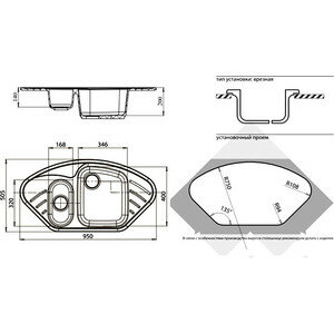 Мойка кухонная GranFest CORNER GF-C-960E угловая 950*505мм топаз, мрамор