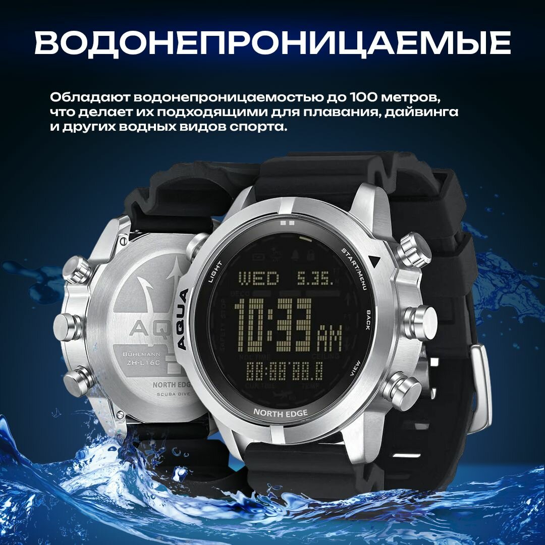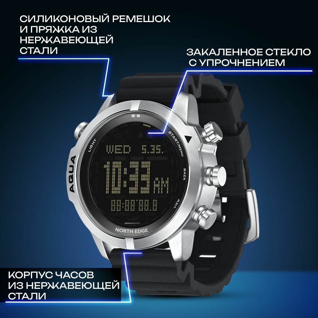 Часы наручные мужские NORTH EDGE Aqua Black (электронные, тактические) интересное: