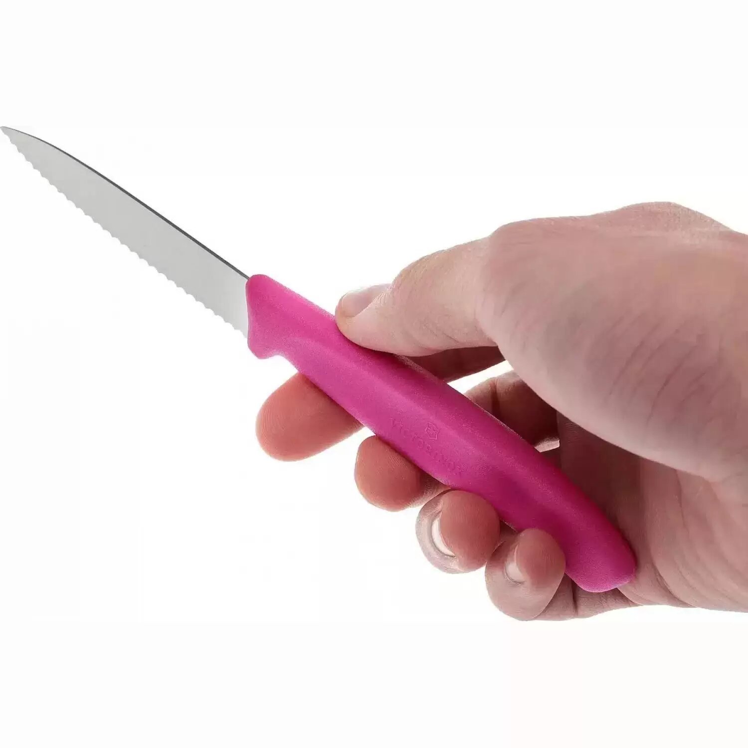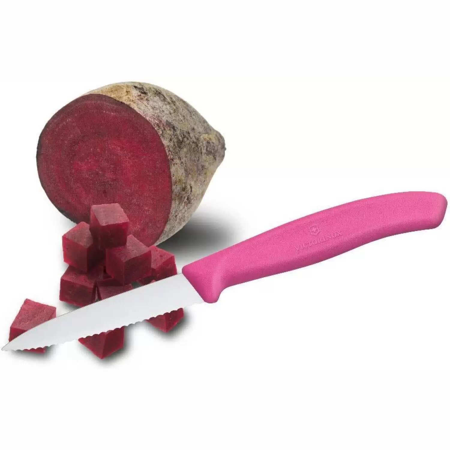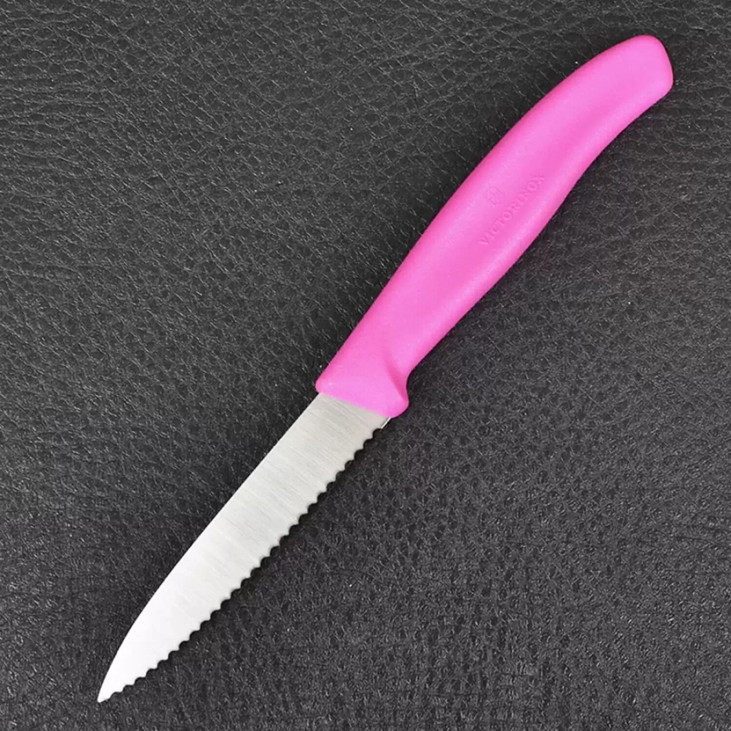 Купить Нож кухонный Victorinox Swiss Classic, для овощей, 80мм, заточка серрейтор, стальной, розовый [6.7636.l115]